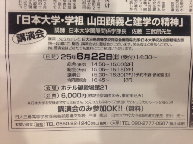 昨日は、日本大学の校友会の総会でした。日大三島高校と合同