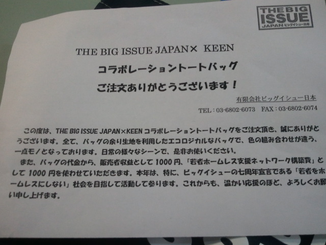 この度、創刊7周年にあたり、有名なフットウェアブランドのKEENとのコラボでトートバックの販売をする。自分も一枚もうしこんだ。
