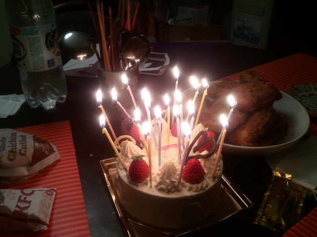 今日は妻が用事で外出した。日曜日なので昼食と夕飯も自分が用意する事になった。昼食の時に19歳になった息子が、今日は自分の誕生日だと告げられた。うっかりしていた(焦)夕飯はケンタッキーとケーキを用意した。ケーキショップでロウソクは何本と聞かれたので年齢に合わせて19本と言うべきところ、なぜだか20本と返事をしてしまった。