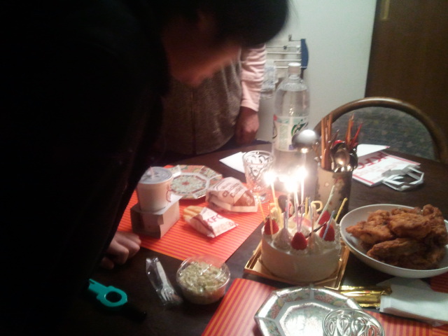 た。バカらしさに、息子も笑いながら吹き消した。でも少しはうれしそうであった。左の写真がロウソクを外した後の様子。ケーキはおいしかった。はずなのだろうが、その前に食べたケンタッキーフライドチキンが重たくて最後のケーキのおいしさも半減したが、まあまあよかった。でも明日の夕飯は、焼き魚とみそ汁が良いと思った。
